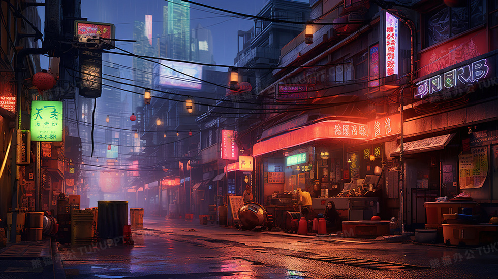 本作品内容为彩色赛博朋克城市街景, 格式为 jpg, 大小6 MB, 图片尺寸为2912 x 1632, 源文件无水印, 欢迎使用熊猫办公。 如认为平台内容涉嫌侵权,可通过邮件:tousu@tukuppt.com提出书面通知,我们将及时处理。