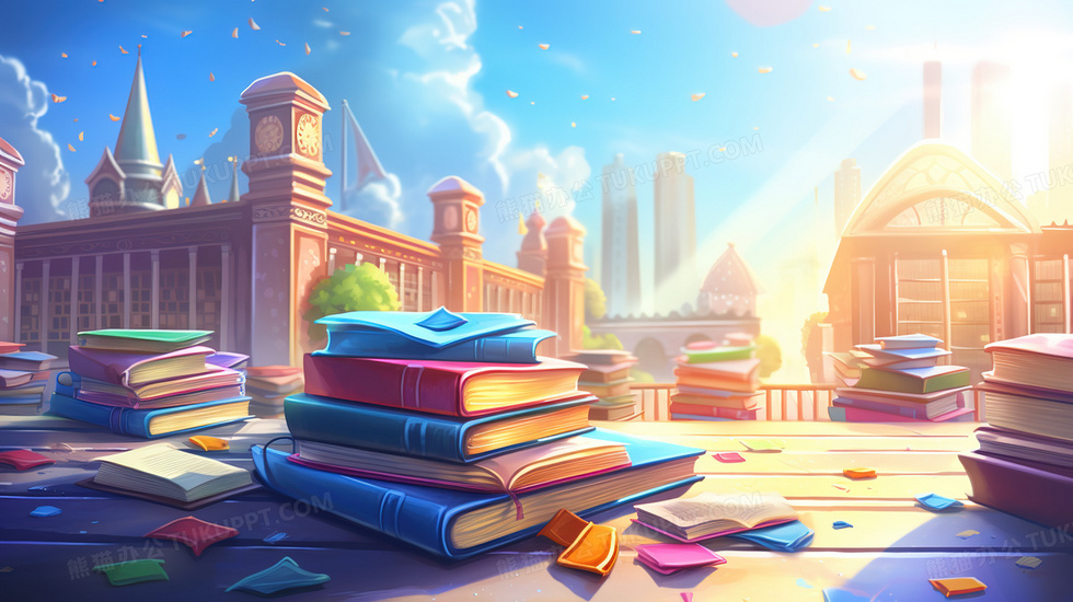 本作品内容为彩色校园书本青春插画, 格式为 jpg, 大小5 MB, 图片尺寸为2912 x 1632, 源文件无水印, 欢迎使用熊猫办公。 如认为平台内容涉嫌侵权,可通过邮件:tousu@tukuppt.com提出书面通知,我们将及时处理。