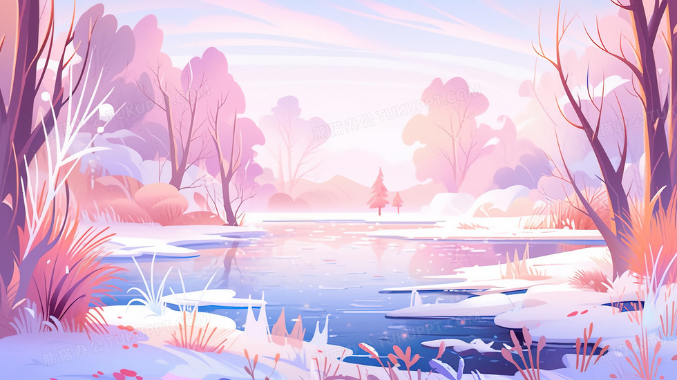 本作品内容为冬季树林里流淌的小河雪景插画, 格式为 jpg, 大小5 MB, 图片尺寸为2912 x 1632, 源文件无水印, 欢迎使用熊猫办公。 如认为平台内容涉嫌侵权,可通过邮件:tousu@tukuppt.com提出书面通知,我们将及时处理。