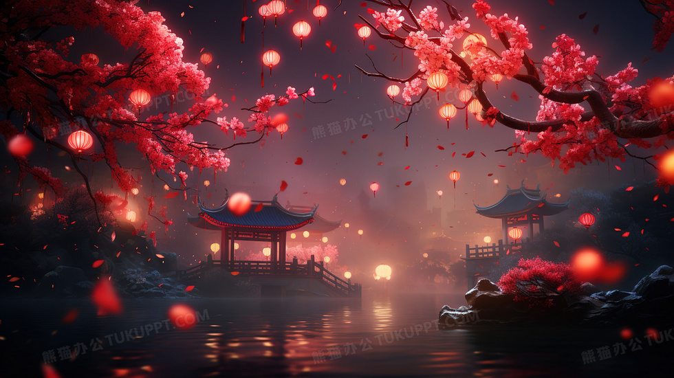 本作品内容为中国传统阁楼灯笼新年庆典插画, 格式为 jpg, 大小6 MB, 图片尺寸为2912 x 1632, 源文件无水印, 欢迎使用熊猫办公。 如认为平台内容涉嫌侵权,可通过邮件:tousu@tukuppt.com提出书面通知,我们将及时处理。