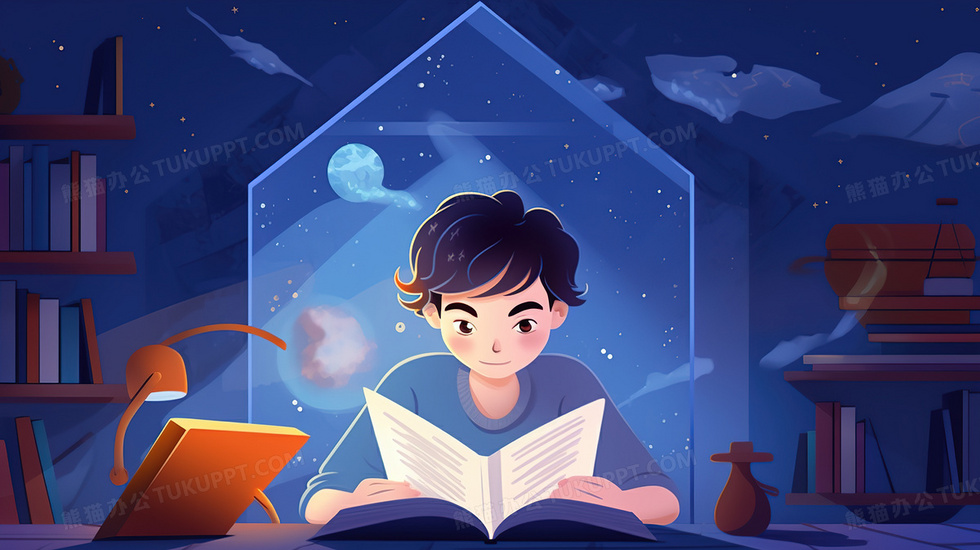 本作品内容为深夜读书学习的孩子插画, 格式为 jpg, 大小5 MB, 图片尺寸为2912 x 1632, 源文件无水印, 欢迎使用熊猫办公。 如认为平台内容涉嫌侵权,可通过邮件:tousu@tukuppt.com提出书面通知,我们将及时处理。