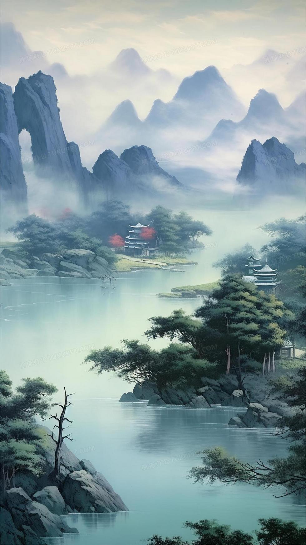 本作品内容为中国风水墨山水楼台景色, 格式为 jpg, 大小1 MB, 图片尺寸为1632 x 2912, 源文件无水印, 欢迎使用熊猫办公。 如认为平台内容涉嫌侵权,可通过邮件:tousu@tukuppt.com提出书面通知,我们将及时处理。