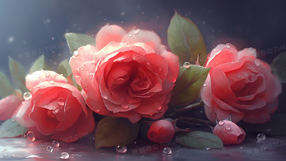 本作品内容为娇艳欲滴的红色玫瑰花七夕情人节礼物插画, 格式为 jpg, 大小5 MB, 图片尺寸为2912 x 1632, 源文件无水印, 欢迎使用熊猫办公。 如认为平台内容涉嫌侵权,可通过邮件:tousu@tukuppt.com提出书面通知,我们将及时处理。