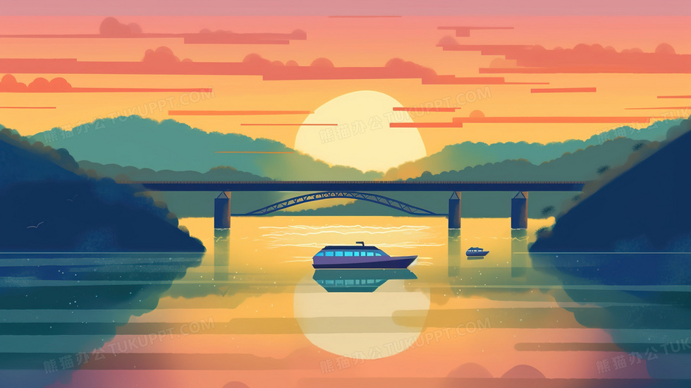 本作品内容为彩色唯美阳光下的跨海大桥风景插画, 格式为 jpg, 大小4 MB, 图片尺寸为2912 x 1632, 源文件无水印, 欢迎使用熊猫办公。 如认为平台内容涉嫌侵权,可通过邮件:tousu@tukuppt.com提出书面通知,我们将及时处理。