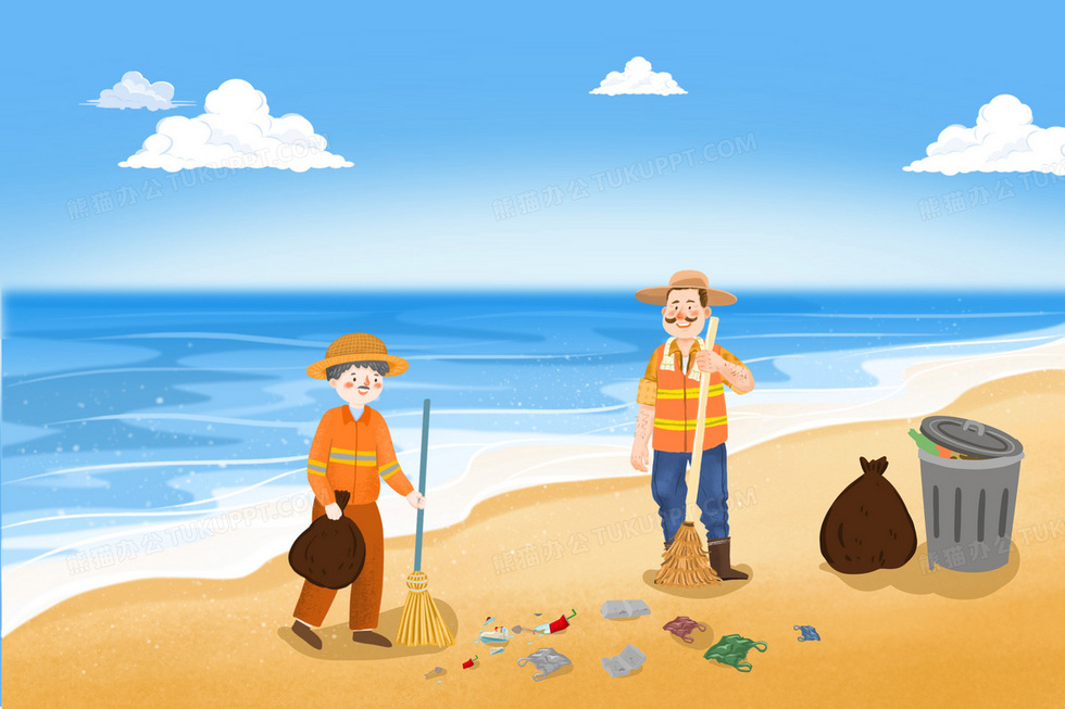 本作品内容为清洁工人清理海边垃圾公益插画, 格式为 psd, 大小12 MB, 请使用软件PhotoShop(CC)打开, 源文件无水印, 欢迎使用熊猫办公。 如认为平台内容涉嫌侵权,可通过邮件:tousu@tukuppt.com提出书面通知,我们将及时处理。