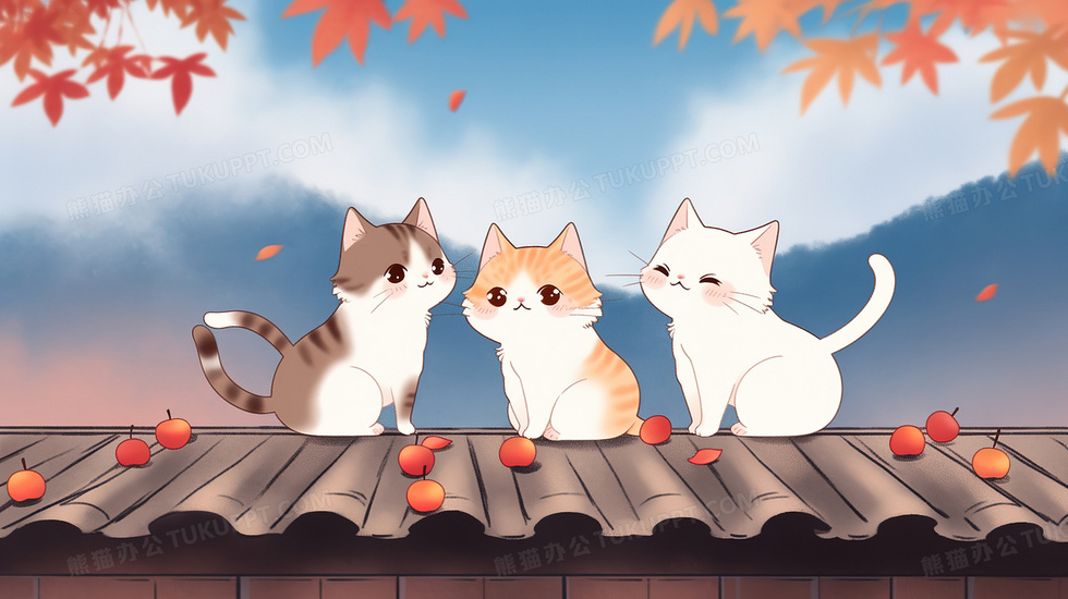 本作品内容为霜降节气摘柿子的猫咪创意插画, 格式为 jpg, 大小3 MB, 图片尺寸为2912 x 1632, 源文件无水印, 欢迎使用熊猫办公。 如认为平台内容涉嫌侵权,可通过邮件:tousu@tukuppt.com提出书面通知,我们将及时处理。