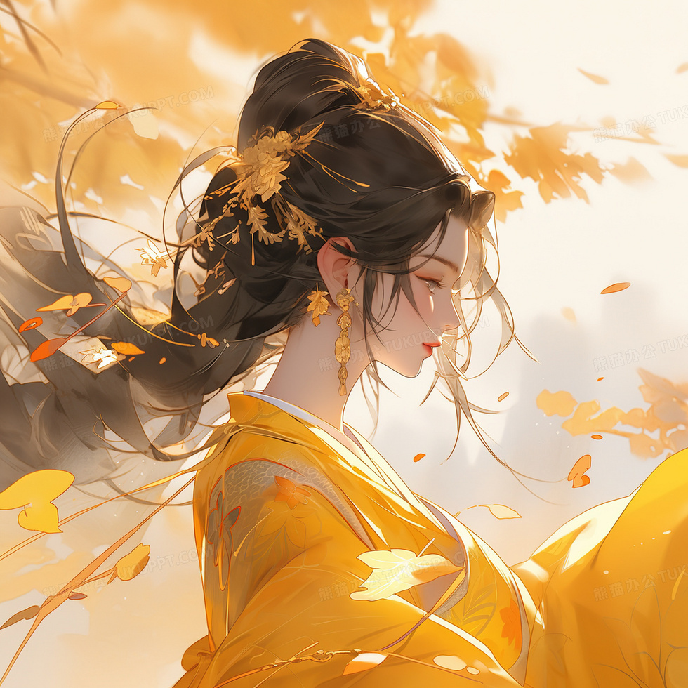 本作品内容为唯美古风美女金色枫树林中的少女创意插画, 格式为 jpg, 大小5 MB, 图片尺寸为2048 x 2048, 源文件无水印, 欢迎使用熊猫办公。 如认为平台内容涉嫌侵权,可通过邮件:tousu@tukuppt.com提出书面通知,我们将及时处理。