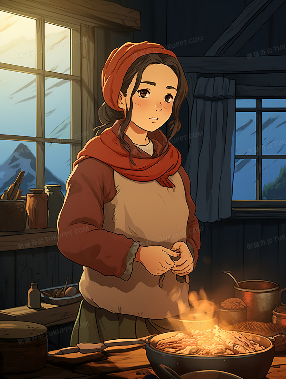 本作品内容为乡村房屋厨房里烧火煮饭的女人插画, 格式为 jpg, 大小5 MB, 图片尺寸为1856 x 2464, 源文件无水印, 欢迎使用熊猫办公。 如认为平台内容涉嫌侵权,可通过邮件:tousu@tukuppt.com提出书面通知,我们将及时处理。