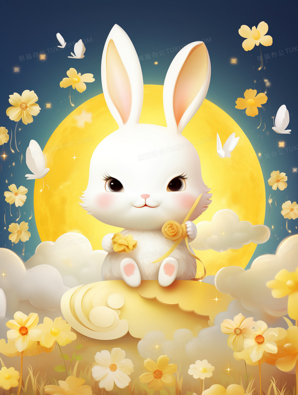 本作品内容为金色月亮花朵中的可爱小白兔插画, 格式为 jpg, 大小4 MB, 图片尺寸为1856 x 2464, 源文件无水印, 欢迎使用熊猫办公。 如认为平台内容涉嫌侵权,可通过邮件:tousu@tukuppt.com提出书面通知,我们将及时处理。