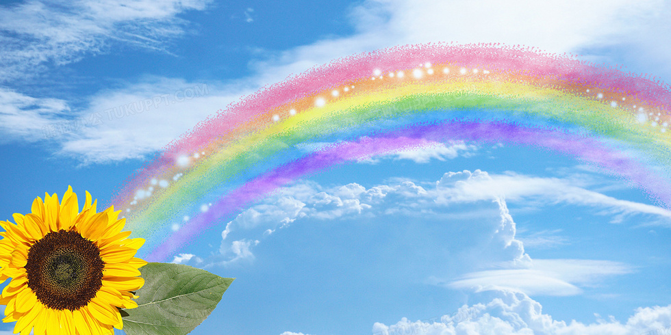本作品内容为小清新向日葵彩虹天空背景, 格式为 psd, 大小81 MB, 图片尺寸为4724 x 2362, 作品中背景图片无需修改, 源文件无水印,可以直接使用, 欢迎使用熊猫办公。 如认为平台内容涉嫌侵权,可通过邮件:tousu@tukuppt.com提出书面通知,我们将及时处理。