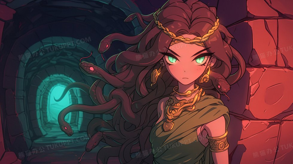 本作品内容为虚拟人物角色蛇女美杜莎插画, 格式为 jpg, 大小4 MB, 图片尺寸为2912 x 1632, 源文件无水印, 欢迎使用熊猫办公。 如认为平台内容涉嫌侵权,可通过邮件:tousu@tukuppt.com提出书面通知,我们将及时处理。
