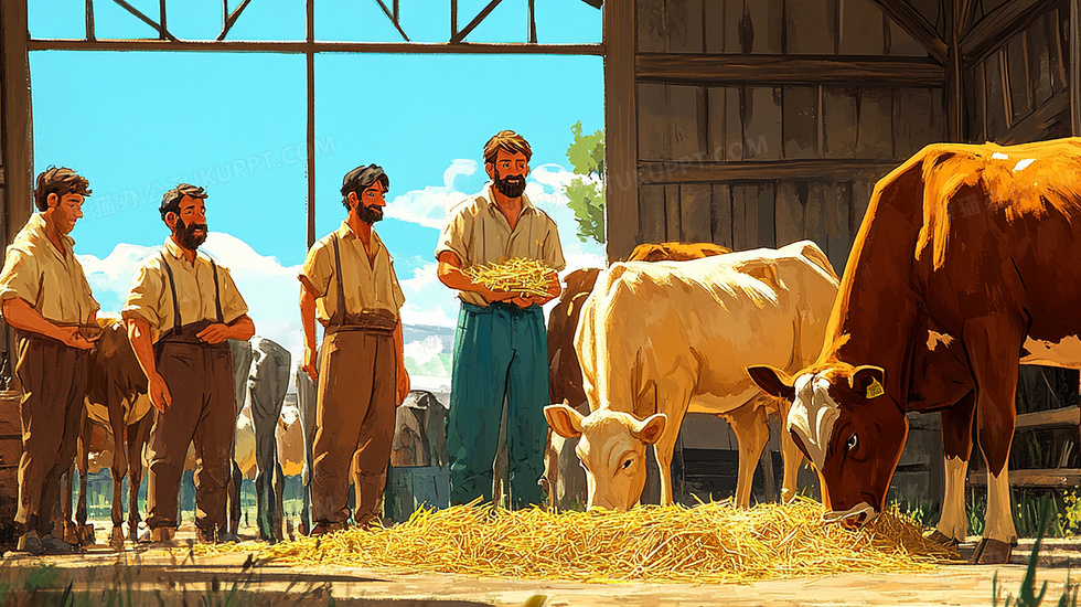 本作品内容为农场牧场农业养殖喂养牛群插画, 格式为 jpg, 大小6 MB, 图片尺寸为2912 x 1632, 源文件无水印, 欢迎使用熊猫办公。 如认为平台内容涉嫌侵权,可通过邮件:tousu@tukuppt.com提出书面通知,我们将及时处理。