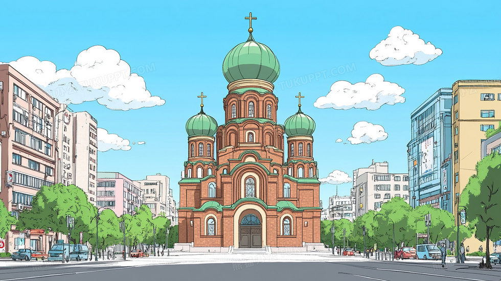 本作品内容为哈尔滨索菲亚教堂插画, 格式为 jpg, 大小4 MB, 图片尺寸为2912 x 1632, 源文件无水印, 欢迎使用熊猫办公。 如认为平台内容涉嫌侵权,可通过邮件:tousu@tukuppt.com提出书面通知,我们将及时处理。