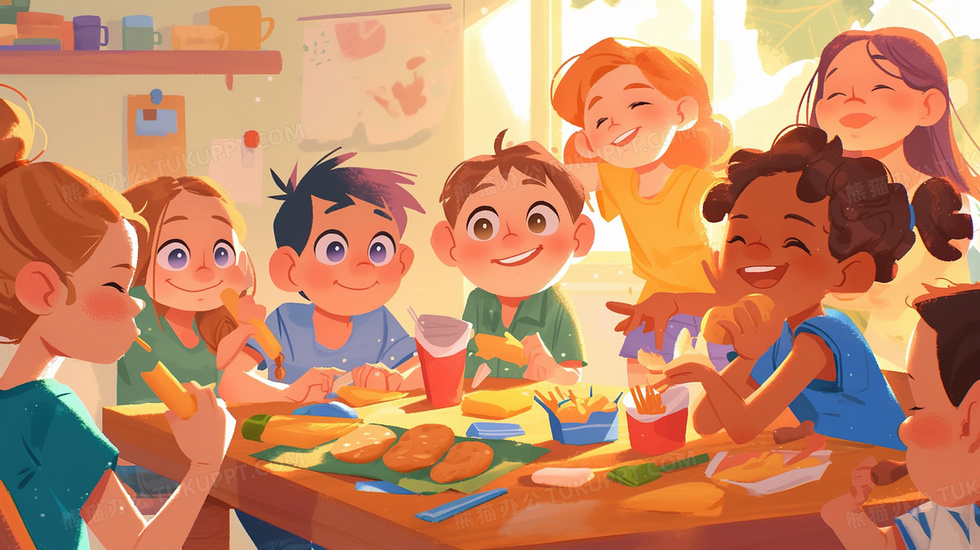 本作品内容为聚会聊天吃零食的小朋友插画, 格式为 jpg, 大小3 MB, 图片尺寸为2912 x 1632, 源文件无水印, 欢迎使用熊猫办公。 如认为平台内容涉嫌侵权,可通过邮件:tousu@tukuppt.com提出书面通知,我们将及时处理。