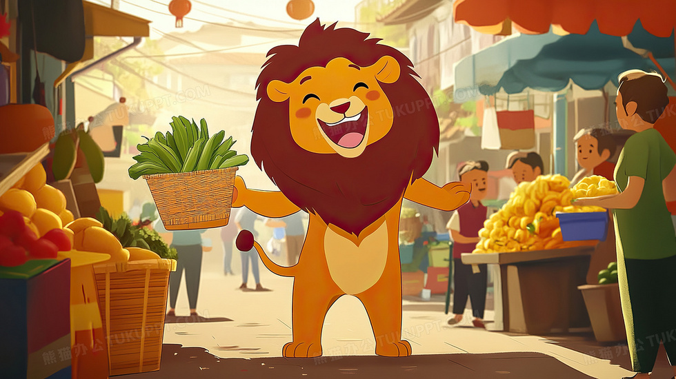 本作品内容为拿着一箩筐蔬菜的小狮子插画, 格式为 jpg, 大小3 MB, 图片尺寸为2912 x 1632, 源文件无水印, 欢迎使用熊猫办公。 如认为平台内容涉嫌侵权,可通过邮件:tousu@tukuppt.com提出书面通知,我们将及时处理。