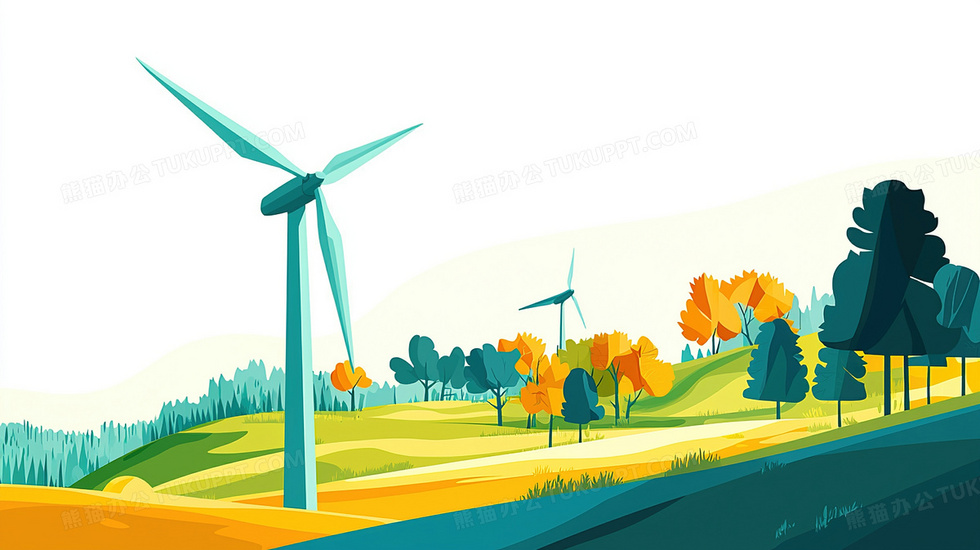本作品内容为绿色环保新能源电力风车背景, 格式为 jpg, 大小2 MB, 图片尺寸为2912 x 1632, 作品中背景图片无需修改, 源文件无水印,可以直接使用, 欢迎使用熊猫办公。 如认为平台内容涉嫌侵权,可通过邮件:tousu@tukuppt.com提出书面通知,我们将及时处理。