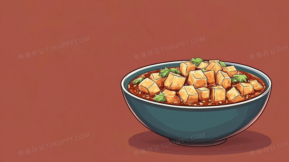 本作品内容为家庭美食麻婆豆腐背景, 格式为 jpg, 大小2 MB, 图片尺寸为2912 x 1632, 作品中背景图片无需修改, 源文件无水印,可以直接使用, 欢迎使用熊猫办公。 如认为平台内容涉嫌侵权,可通过邮件:tousu@tukuppt.com提出书面通知,我们将及时处理。