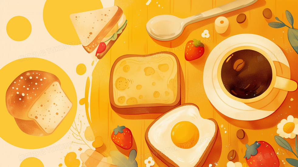 本作品内容为俯视角度面包早餐插画, 格式为 jpg, 大小6 MB, 图片尺寸为2912 x 1632, 源文件无水印, 欢迎使用熊猫办公。 如认为平台内容涉嫌侵权,可通过邮件:tousu@tukuppt.com提出书面通知,我们将及时处理。