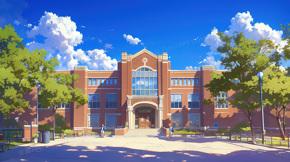 本作品内容为蓝天白云校园教学楼风景插画, 格式为 jpg, 大小3 MB, 图片尺寸为2912 x 1632, 源文件无水印, 欢迎使用熊猫办公。 如认为平台内容涉嫌侵权,可通过邮件:tousu@tukuppt.com提出书面通知,我们将及时处理。