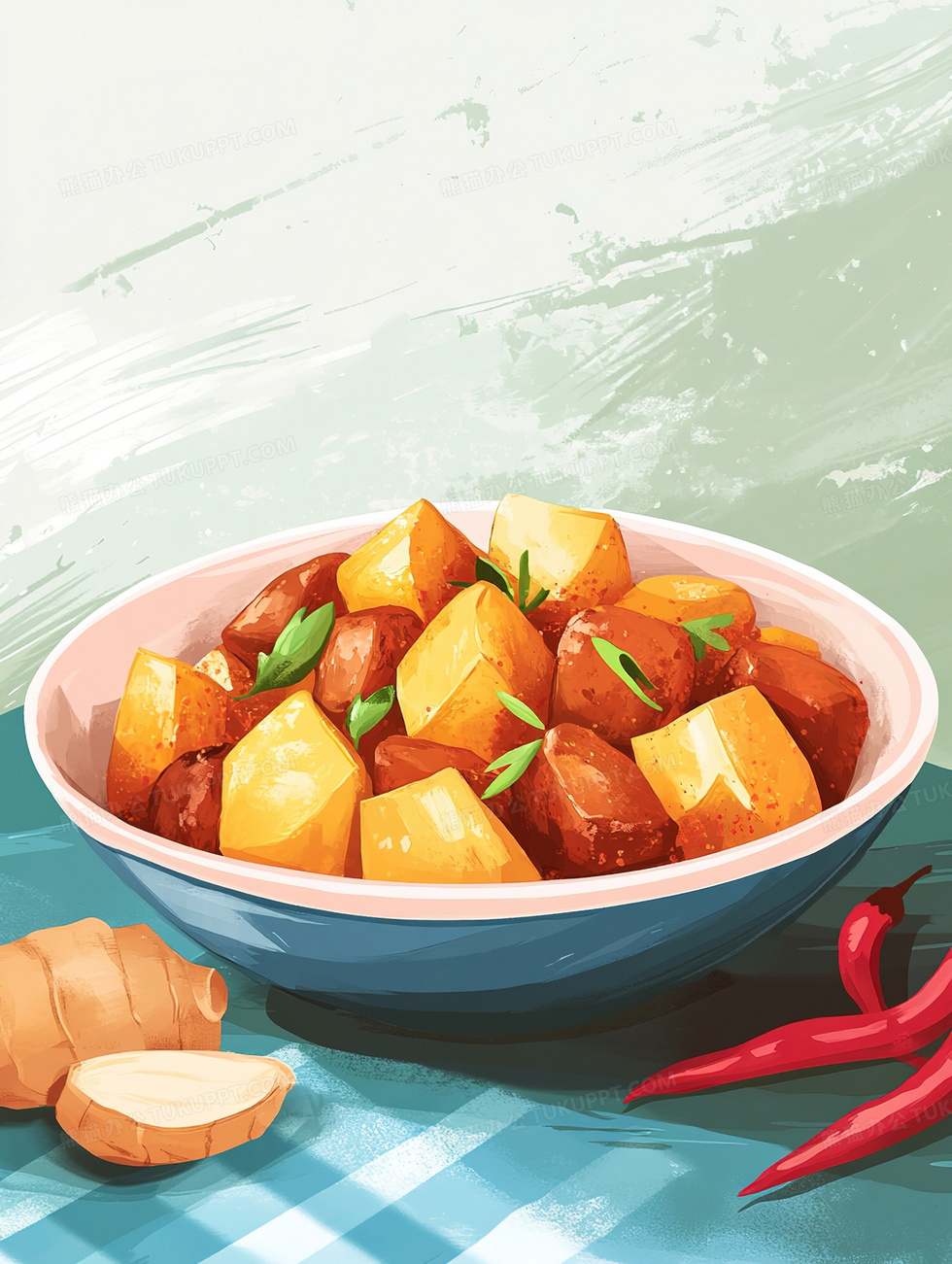 本作品内容为卡通家常美食土豆炖肉背景, 格式为 jpg, 大小3 MB, 图片尺寸为1856 x 2464, 作品中背景图片无需修改, 源文件无水印,可以直接使用, 欢迎使用熊猫办公。 如认为平台内容涉嫌侵权,可通过邮件:tousu@tukuppt.com提出书面通知,我们将及时处理。