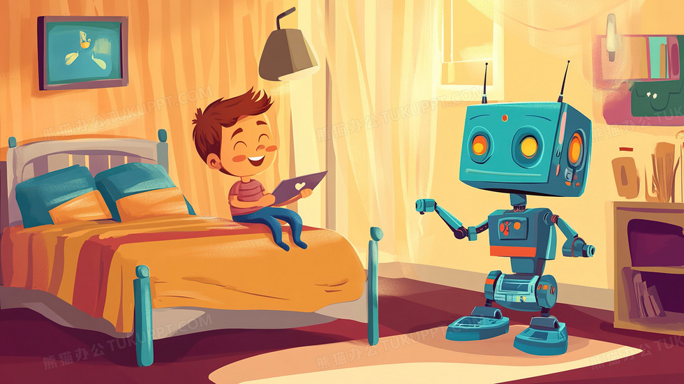 本作品内容为机器人室内教育陪伴儿童插画, 格式为 jpg, 大小3 MB, 图片尺寸为2912 x 1632, 源文件无水印, 欢迎使用熊猫办公。 如认为平台内容涉嫌侵权,可通过邮件:tousu@tukuppt.com提出书面通知,我们将及时处理。