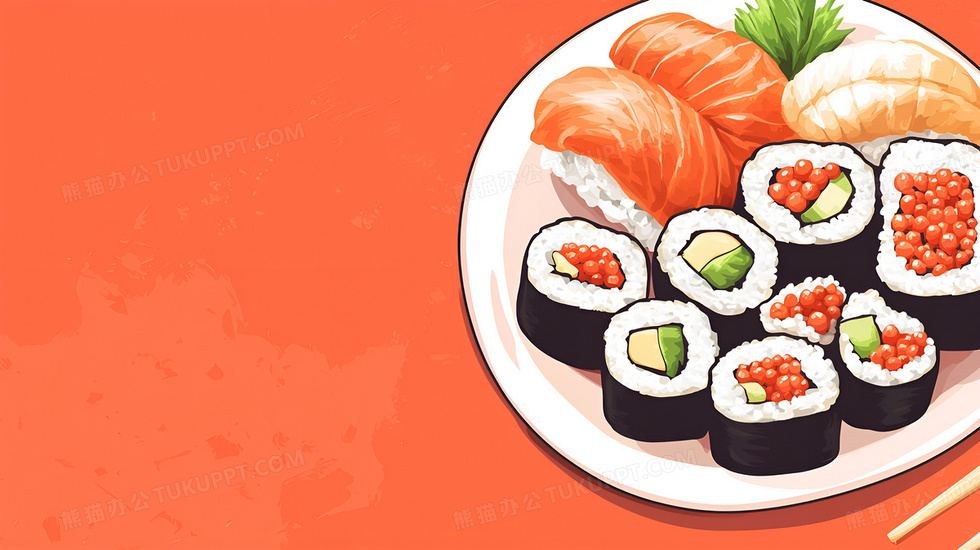 本作品内容为简约卡通寿司美食背景, 格式为 jpg, 大小2 MB, 图片尺寸为2912 x 1632, 作品中背景图片无需修改, 源文件无水印,可以直接使用, 欢迎使用熊猫办公。 如认为平台内容涉嫌侵权,可通过邮件:tousu@tukuppt.com提出书面通知,我们将及时处理。