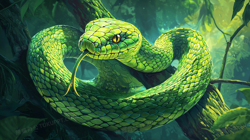本作品内容为草丛盘旋的青蛇植物插画, 格式为 jpg, 大小3 MB, 图片尺寸为2912 x 1632, 源文件无水印, 欢迎使用熊猫办公。 如认为平台内容涉嫌侵权,可通过邮件:tousu@tukuppt.com提出书面通知,我们将及时处理。