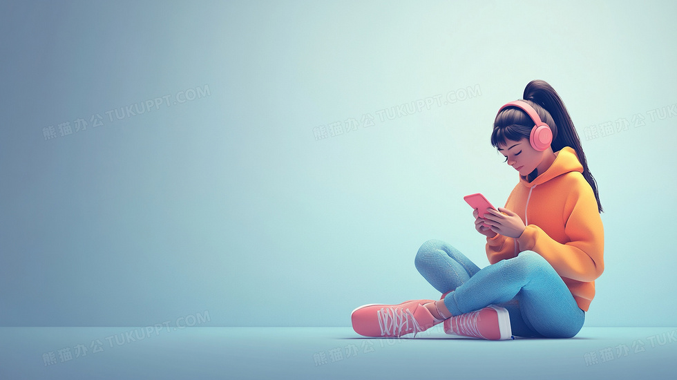 本作品内容为女孩带耳机玩手机电子产品放松娱乐背景, 格式为 jpg, 大小2 MB, 图片尺寸为2912 x 1632, 作品中背景图片无需修改, 源文件无水印,可以直接使用, 欢迎使用熊猫办公。 如认为平台内容涉嫌侵权,可通过邮件:tousu@tukuppt.com提出书面通知,我们将及时处理。