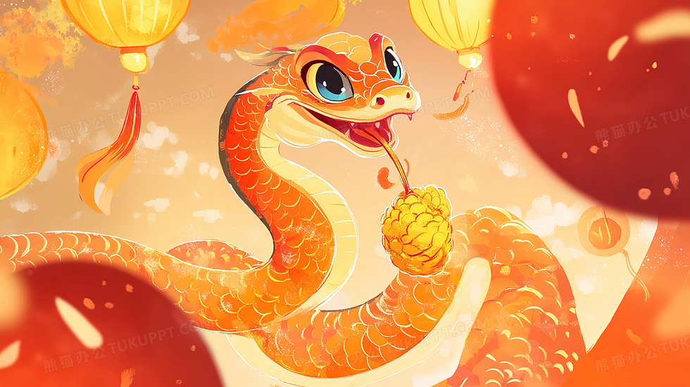 本作品内容为蛇年柿子柿柿如意灯笼与蛇创意壁纸插画, 格式为 jpg, 大小3 MB, 图片尺寸为2912 x 1632, 源文件无水印, 欢迎使用熊猫办公。 如认为平台内容涉嫌侵权,可通过邮件:tousu@tukuppt.com提出书面通知,我们将及时处理。