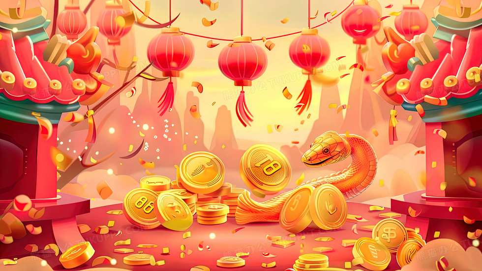 本作品内容为卡通蛇年灯笼聚宝盆与蛇创意插画, 格式为 jpg, 大小3 MB, 图片尺寸为2912 x 1632, 源文件无水印, 欢迎使用熊猫办公。 如认为平台内容涉嫌侵权,可通过邮件:tousu@tukuppt.com提出书面通知,我们将及时处理。