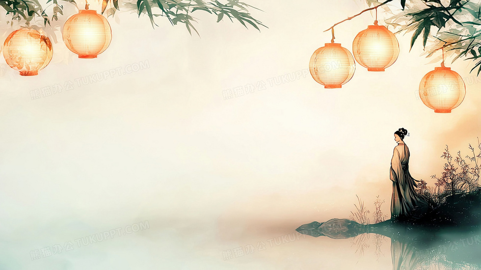 本作品内容为树枝上的新年装饰灯笼古风女子背景, 格式为 jpg, 大小2 MB, 图片尺寸为2912 x 1632, 作品中背景图片无需修改, 源文件无水印,可以直接使用, 欢迎使用熊猫办公。 如认为平台内容涉嫌侵权,可通过邮件:tousu@tukuppt.com提出书面通知,我们将及时处理。