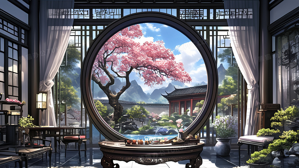 本作品内容为中国风中式建筑庭院门洞古建筑插画, 格式为 jpg, 大小3 MB, 图片尺寸为2912 x 1632, 源文件无水印, 欢迎使用熊猫办公。 如认为平台内容涉嫌侵权,可通过邮件:tousu@tukuppt.com提出书面通知,我们将及时处理。
