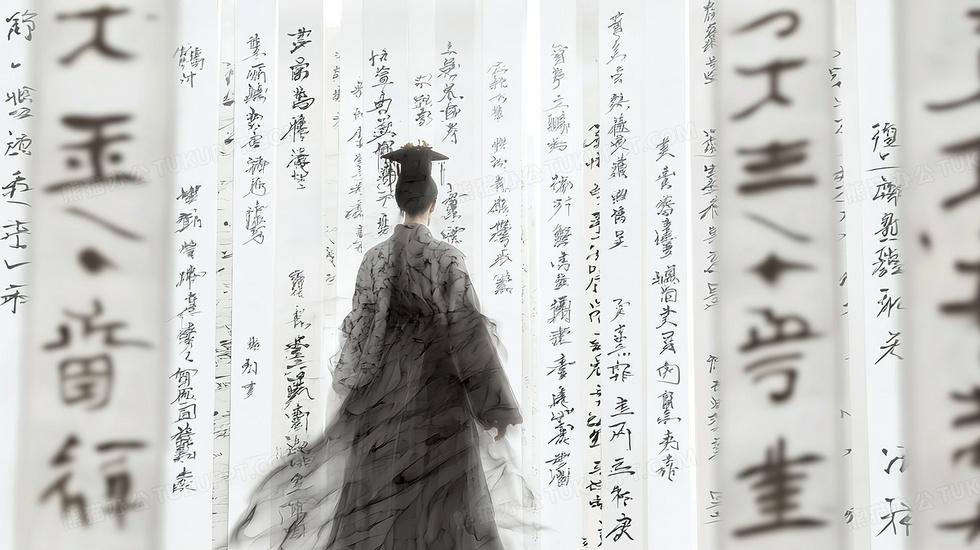 本作品内容为水墨书法文字古代人物插画, 格式为 jpg, 大小3 MB, 图片尺寸为2912 x 1632, 源文件无水印, 欢迎使用熊猫办公。 如认为平台内容涉嫌侵权,可通过邮件:tousu@tukuppt.com提出书面通知,我们将及时处理。