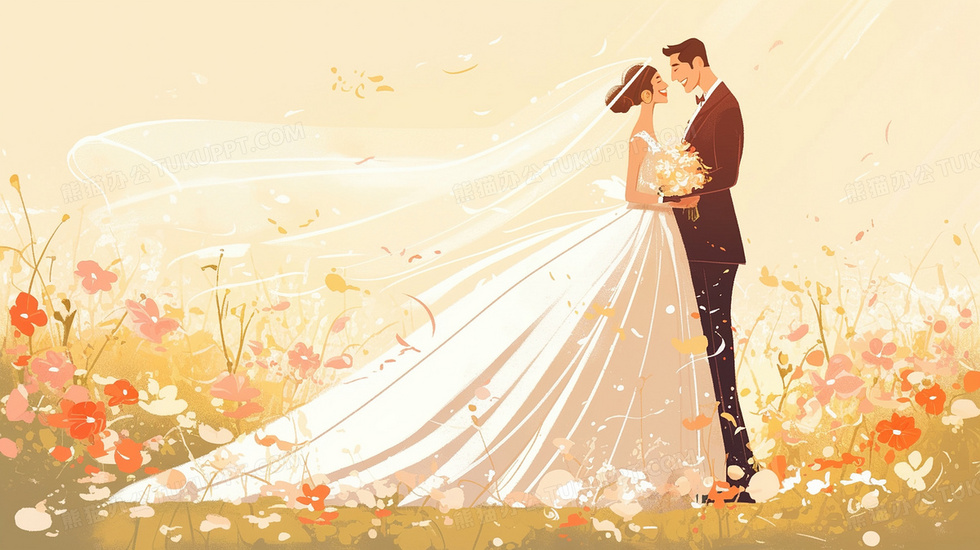 本作品内容为卡通浪漫婚礼相拥新婚夫妻插画, 格式为 jpg, 大小3 MB, 图片尺寸为2912 x 1632, 源文件无水印, 欢迎使用熊猫办公。 如认为平台内容涉嫌侵权,可通过邮件:tousu@tukuppt.com提出书面通知,我们将及时处理。
