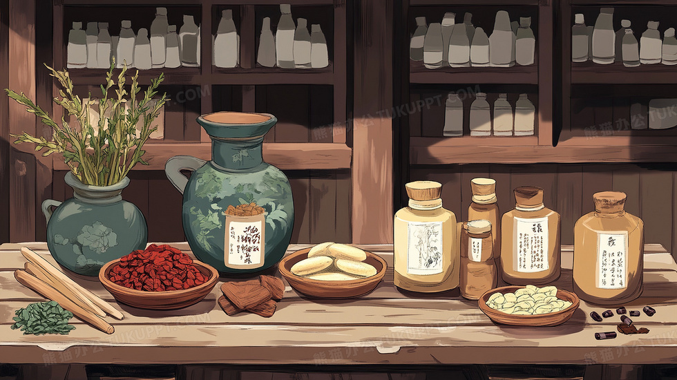 本作品内容为中药中医药铺养生医疗插画, 格式为 jpg, 大小3 MB, 图片尺寸为2912 x 1632, 源文件无水印, 欢迎使用熊猫办公。 如认为平台内容涉嫌侵权,可通过邮件:tousu@tukuppt.com提出书面通知,我们将及时处理。