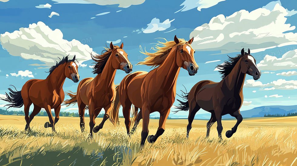 本作品内容为草原上奔腾的骏马插画, 格式为 jpg, 大小3 MB, 图片尺寸为2912 x 1632, 源文件无水印, 欢迎使用熊猫办公。 如认为平台内容涉嫌侵权,可通过邮件:tousu@tukuppt.com提出书面通知,我们将及时处理。