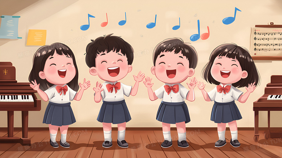 本作品内容为在音乐教室里唱歌的孩子插画, 格式为 jpg, 大小1 MB, 图片尺寸为2912 x 1632, 源文件无水印, 欢迎使用熊猫办公。 如认为平台内容涉嫌侵权,可通过邮件:tousu@tukuppt.com提出书面通知,我们将及时处理。