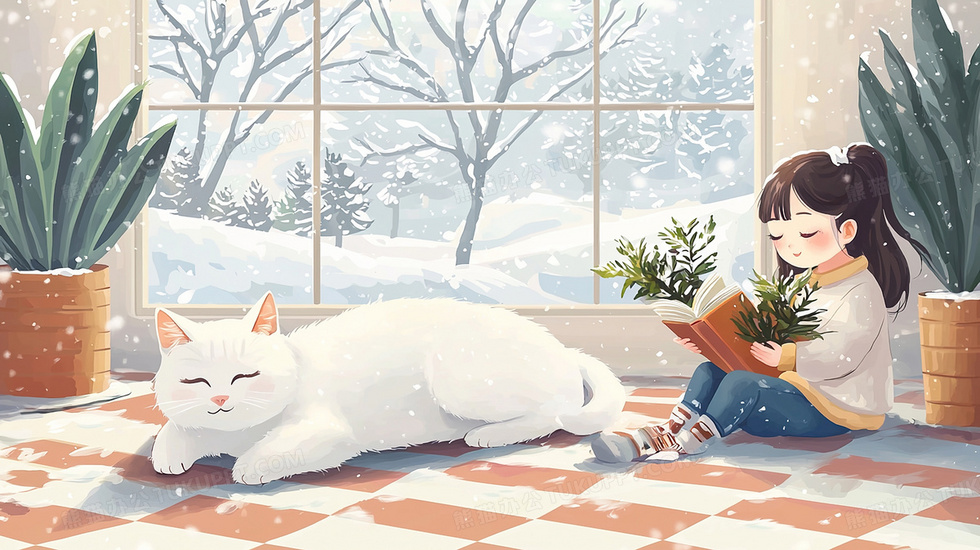 本作品内容为冬季坐在窗旁看书的少女和宠物猫插画, 格式为 jpg, 大小3 MB, 图片尺寸为2912 x 1632, 源文件无水印, 欢迎使用熊猫办公。 如认为平台内容涉嫌侵权,可通过邮件:tousu@tukuppt.com提出书面通知,我们将及时处理。