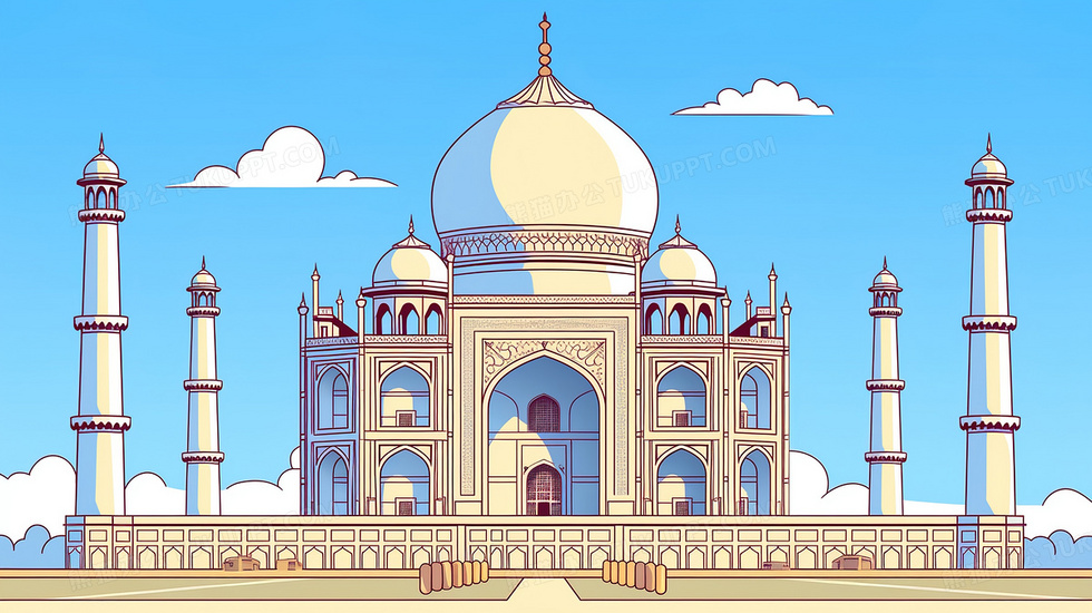 本作品内容为卡通印度泰姬陵建筑插画, 格式为 jpg, 大小3 MB, 图片尺寸为2912 x 1632, 源文件无水印, 欢迎使用熊猫办公。 如认为平台内容涉嫌侵权,可通过邮件:tousu@tukuppt.com提出书面通知,我们将及时处理。