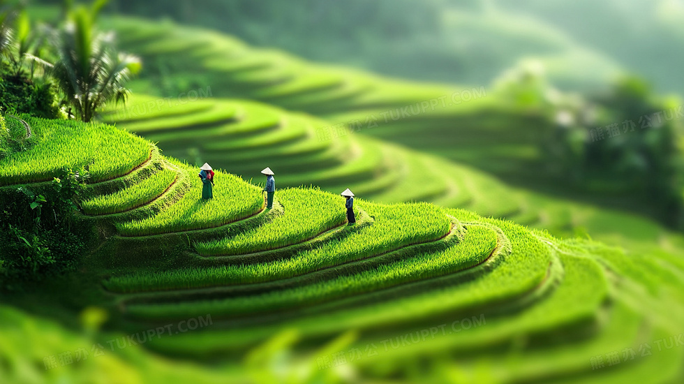本作品内容为梯田微缩景物模型合成背景, 格式为 jpg, 大小3 MB, 图片尺寸为2912 x 1632, 作品中背景图片无需修改, 源文件无水印,可以直接使用, 欢迎使用熊猫办公。 如认为平台内容涉嫌侵权,可通过邮件:tousu@tukuppt.com提出书面通知,我们将及时处理。