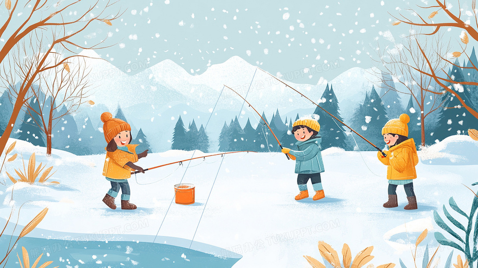 本作品内容为冬天孩子在湖面冰钓插画, 格式为 jpg, 大小3 MB, 图片尺寸为2912 x 1632, 源文件无水印, 欢迎使用熊猫办公。 如认为平台内容涉嫌侵权,可通过邮件:tousu@tukuppt.com提出书面通知,我们将及时处理。