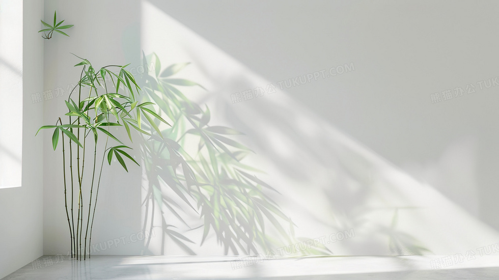 本作品内容为阳光照射墙壁竹叶影子创意背景, 格式为 jpg, 大小2 MB, 图片尺寸为2912 x 1632, 作品中背景图片无需修改, 源文件无水印,可以直接使用, 欢迎使用熊猫办公。 如认为平台内容涉嫌侵权,可通过邮件:tousu@tukuppt.com提出书面通知,我们将及时处理。