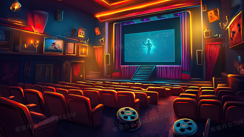 本作品内容为小型电影院场景插画, 格式为 jpg, 大小3 MB, 图片尺寸为2912 x 1632, 源文件无水印, 欢迎使用熊猫办公。 如认为平台内容涉嫌侵权,可通过邮件:tousu@tukuppt.com提出书面通知,我们将及时处理。