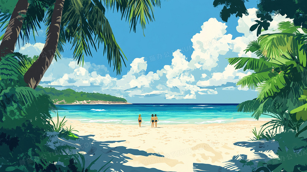 本作品内容为沙滩蓝天野树大海天空插画, 格式为 jpg, 大小3 MB, 图片尺寸为2912 x 1632, 源文件无水印, 欢迎使用熊猫办公。 如认为平台内容涉嫌侵权,可通过邮件:tousu@tukuppt.com提出书面通知,我们将及时处理。