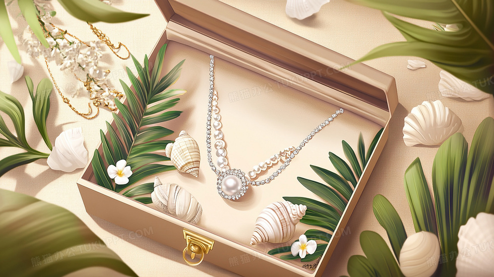 本作品内容为珠宝人工饰品礼盒里的钻石项链插画, 格式为 jpg, 大小3 MB, 图片尺寸为2912 x 1632, 源文件无水印, 欢迎使用熊猫办公。 如认为平台内容涉嫌侵权,可通过邮件:tousu@tukuppt.com提出书面通知,我们将及时处理。