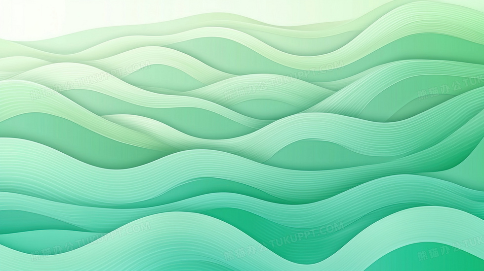 本作品内容为简约层次感绿色水波纹背景, 格式为 jpg, 大小2 MB, 图片尺寸为2912 x 1632, 作品中背景图片无需修改, 源文件无水印,可以直接使用, 欢迎使用熊猫办公。 如认为平台内容涉嫌侵权,可通过邮件:tousu@tukuppt.com提出书面通知,我们将及时处理。