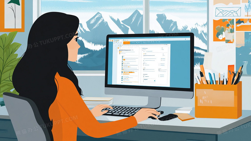 本作品内容为女白领商务职业人物工作插画, 格式为 jpg, 大小3 MB, 图片尺寸为2912 x 1632, 源文件无水印, 欢迎使用熊猫办公。 如认为平台内容涉嫌侵权,可通过邮件:tousu@tukuppt.com提出书面通知,我们将及时处理。