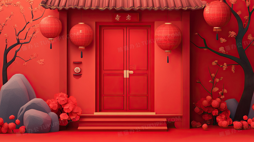 本作品内容为喜庆春节建筑新年过年大门灯笼装饰插画, 格式为 jpg, 大小3 MB, 图片尺寸为2912 x 1632, 源文件无水印, 欢迎使用熊猫办公。 如认为平台内容涉嫌侵权,可通过邮件:tousu@tukuppt.com提出书面通知,我们将及时处理。