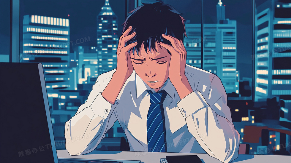 本作品内容为职业人物加班的白领工作插画, 格式为 jpg, 大小3 MB, 图片尺寸为2912 x 1632, 源文件无水印, 欢迎使用熊猫办公。 如认为平台内容涉嫌侵权,可通过邮件:tousu@tukuppt.com提出书面通知,我们将及时处理。