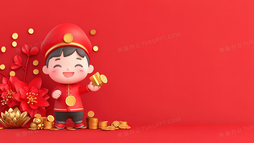本作品内容为3D福娃喜庆红色背景, 格式为 jpg, 大小2 MB, 图片尺寸为2912 x 1632, 作品中背景图片无需修改, 源文件无水印,可以直接使用, 欢迎使用熊猫办公。 如认为平台内容涉嫌侵权,可通过邮件:tousu@tukuppt.com提出书面通知,我们将及时处理。